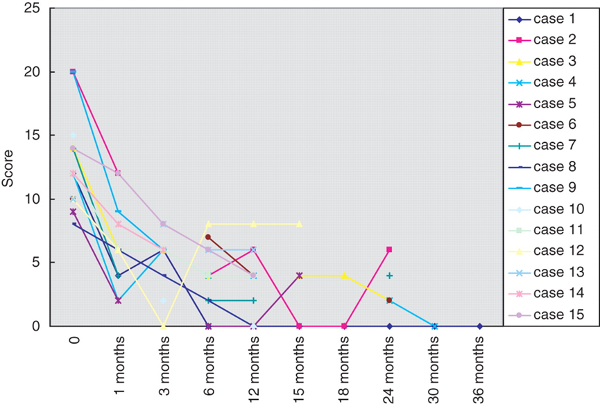 该研究中,22名患者第一次细胞治疗使用的是异体骨髓间充质干细胞。其中4名患者因病情复发,在第二次接受了脐带间充质干细胞治疗。另有2名患者在第一次治疗后又接受了2次脐带间充质干细胞输注,有1名患者在第一次治疗后又接受了3次脐带间充质干细胞输注。