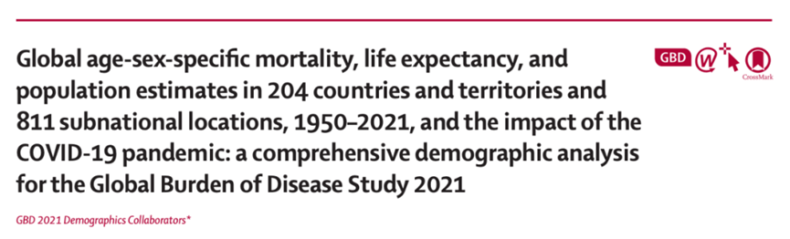 3月11日,顶级医学期刊《柳叶刀》(Lancet)发表的研究显示[1],2020年~2021年新冠疫情的头两年里,新冠导致全球人口的平均预期寿命下降了1.6年,下降的幅度比之前预期的要大。
