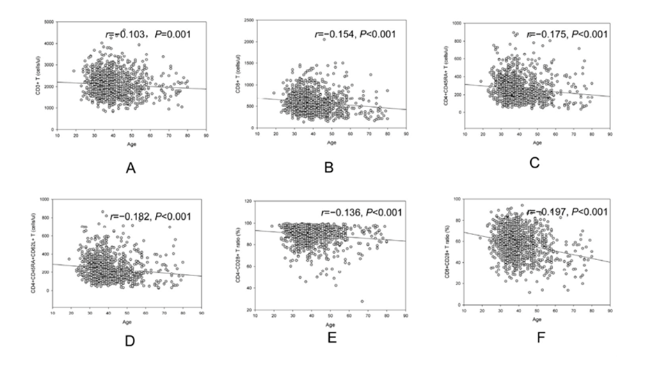随着年龄增长,免疫细胞数量降低从而导致身体免疫机能下降 图源文献[5]