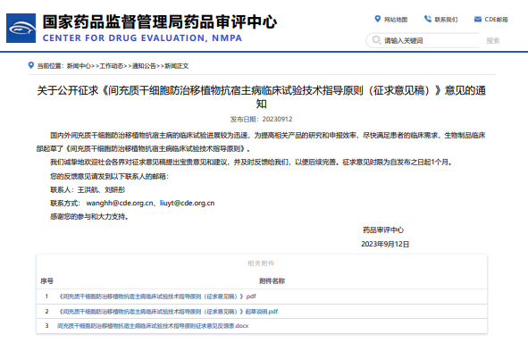 《间充质干细胞防治移植物抗宿主病临床试验技术指导原则(征求意见稿)》