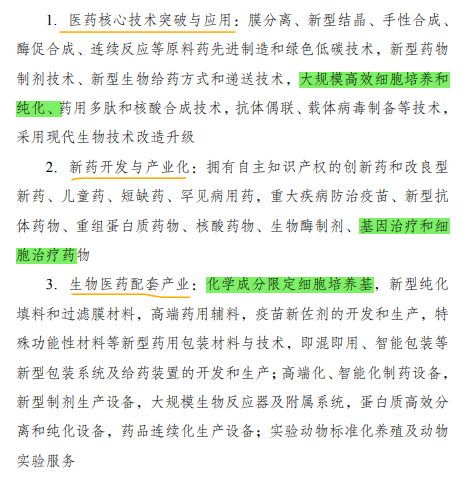 其中在鼓励类的医药板块下,多个领域涉及细胞产业发展,包括鼓励大规模高效细胞培养和纯化,基因治疗和细胞治疗药物,化学成分限定细胞培养基等!