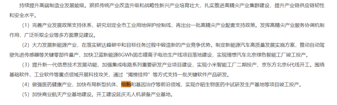 《北京经济技术开发区关于促进细胞与基因治疗产业高质量发展的若干措施》,