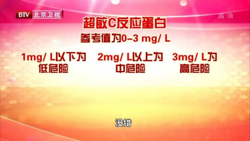 血检中的C反应蛋白可用于判断急性炎症,还有一个指标叫“超敏C反应蛋白”,它相对敏感,可用于伴随慢性炎症疾病的风险评估,正常参考值为0~3mg/L。若它的水平升高,可能提示身体有慢性炎症,与慢性炎症相关疾病的风险也会升高。