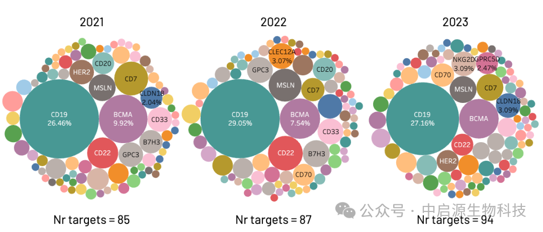 •主要靶点:CD19、BCMA、CD22