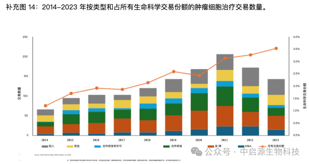 目前,大量试验正在探索TIL疗法、CAR-NK、DC疫苗如何更有效地作用于实体瘤。2023年,超过60%的新免疫细胞疗法试验针对实体瘤,这一趋势预计将在未来持续增强。