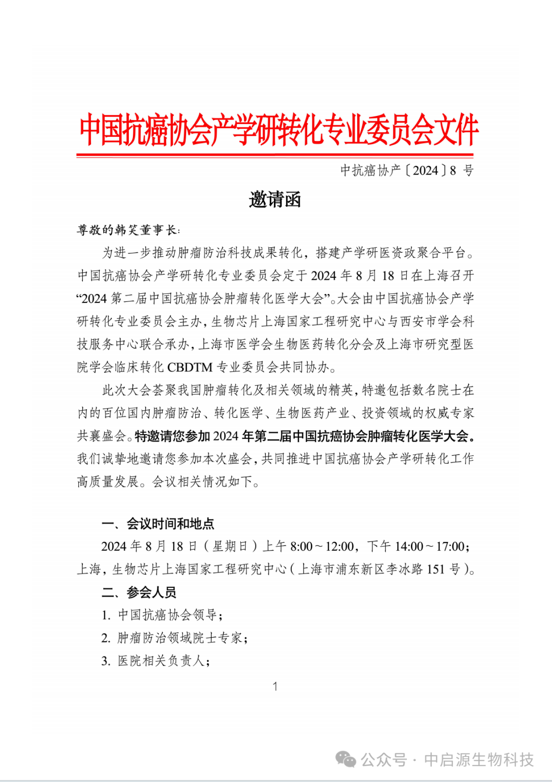 8月18日,由中国抗癌协会产学研转化专业委员会主办,生物芯片上海国家工程研究中心和西安市学会科技服务中心联合承办,上海市医学会生物医药转化分会、上海市研究型医院学会临床转化CBDTM专业委员会及上海现代服务业联合会大健康服务专委会共同协办的“2024第二届中国抗癌协会肿瘤转化医学大会”在上海成功举行。