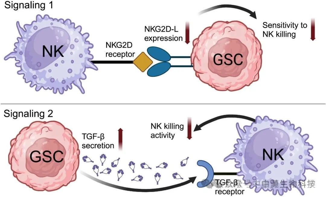 然而,NK细胞却与众不同。它并不依赖抗原识别,而是通过感知“危险信号”来发挥作用。GSCs隐藏得越深,NK细胞反而越能敏锐地察觉到它们的存在。这为我们提供了一个全新的思路:以NK细胞为武器,精准锁定肿瘤干细胞,打破这种“治不死”的恶性循环,为神经胶质瘤的治疗带来新的希望。
