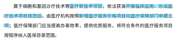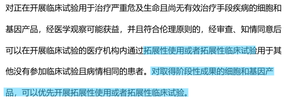 特别针对下面最后一条,对于企业而言只要有阶段性成果的细胞产品,那么就可以去和医疗机构合作,谈拓展性使用,当然也就可以收费。