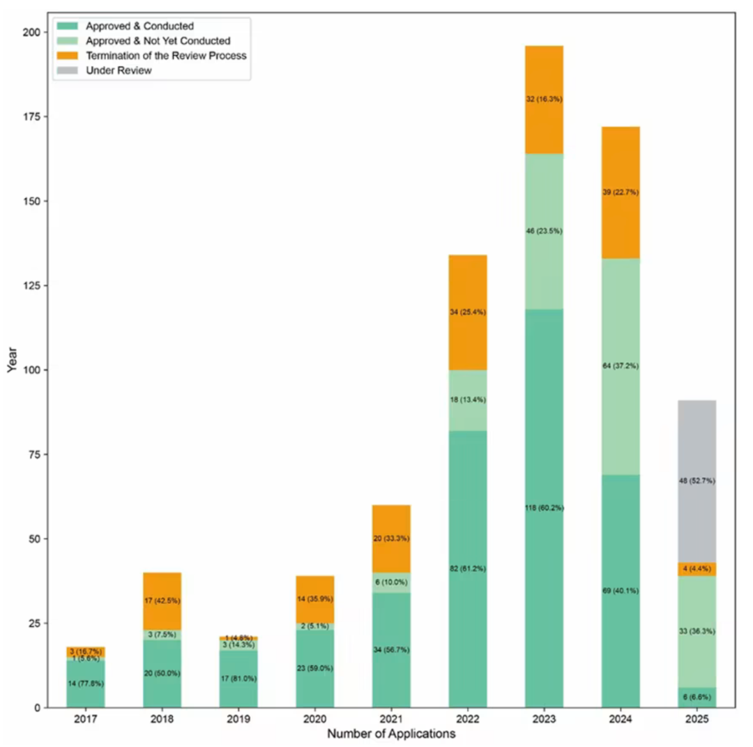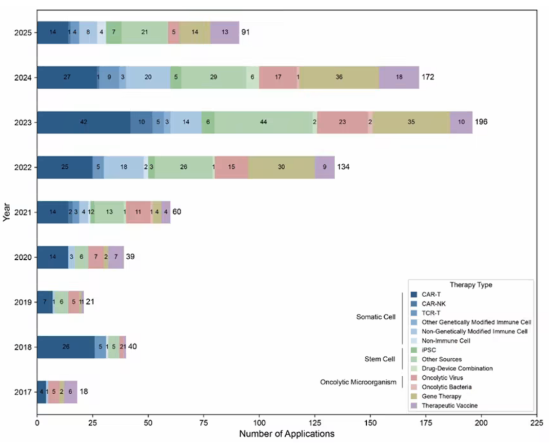 ▲2017-2025年中国CGT产品IND申请及临床试验启动状态