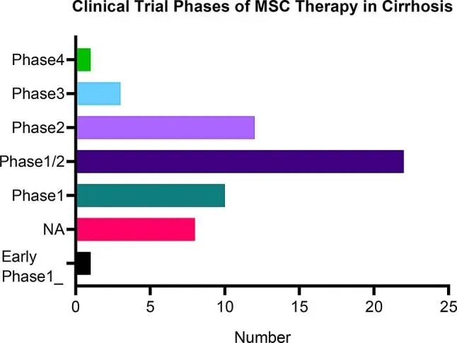 根据2025年的系统分析,全球已有超过50项MSC治疗肝硬化的临床试验在中国、印度、韩国、美国等国家展开,其中大部分为Ⅱ期和Ⅲ期研究。