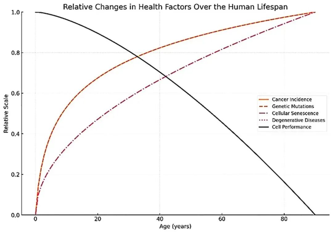 如果问题只在于突变累积,那么人体早该在更早的时候就被癌症击垮。现实却是,癌症往往出现在身体整体“感觉还行”,却开始频繁生病的阶段。