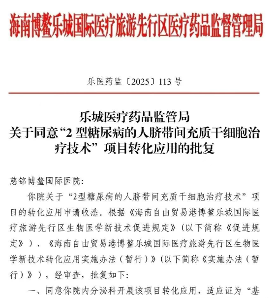 行业动态|重磅!博鳌乐城5.8万元/次干细胞治疗项目获批,糖尿病治疗迎来新选择!