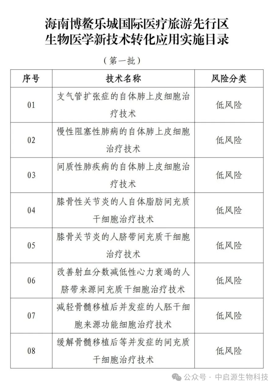 乐城先行区首批公布的生物医学新技术转化项目涵盖干细胞治疗、基因编辑、生物材料三大领域,具体亮点包括:
